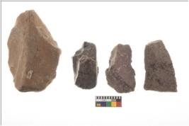 | Description / विवरण | There are n 4 flakes tool; there are multidirectional irregular scar pattern on them; made of short flakes and all four have tapering edges. |