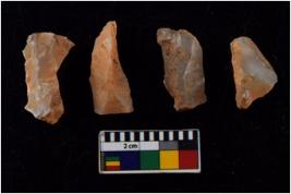 | Description / विवरण | There are n 4 Flake tool; There are multidirectional irregular scar pattern on them. few have blunt edges, Some of them are tapering at one end. |