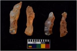 | Description / विवरण | There are n 4 flakes tool; there are flakes with sides trimmed, Marks of secondary flaking are present on the both the faces. |