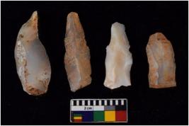 | Description / विवरण | There are n 4 flakes tool; there are flakes with sides trimmed, Marks of secondary flaking are present on the both the faces. |