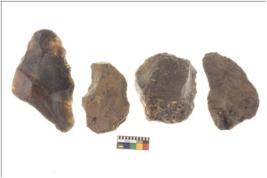 | Description / विवरण | There are n 4 flakes tool; there are multidirectional irregular scar pattern on them; made of short flakes and all four have tapering edges. |