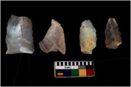 | Description / विवरण | There are n 4 flakes tool; there are flakes with sides trimmed, Marks of secondary flaking are present on the both the faces.The dorsal is relatively flat. |