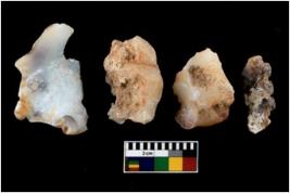 | Description / विवरण | There are n 4 utilized flake cores. There are multi directional irregular scar pattern on them. Two are tapering at one end and two have blunted edges. |