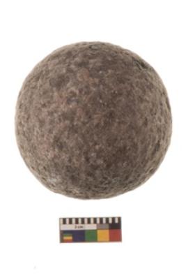 | Description / विवरण | Specimen of a spherical shaped hammer stone with battered surface |