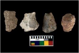 | Description / विवरण | There are n 4 utilized flake cores. Out of them one is made up of Chert, one is made up of Agate and two are made up of Chalcedony. There are multi directional irregular scar pattern on them. Two are tapering at one end and two have blunted edges. |