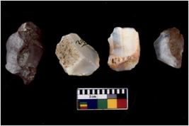 | Description / विवरण | There are n 4 cores; there are multidirectional irregular scar pattern on them. Some of them are tapering at one end. 1 chert and 3 quartz |