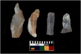 | Description / विवरण | There are n 4 flakes tool; there are large flakes with sides trimmed, Marks of secondary flaking are present on the both the faces. |