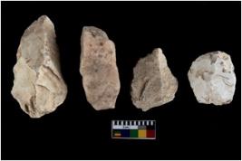 | Description / विवरण | There are 4 flake cores. All of them are fully fluted flake cores without any trace of crested ridge flakes. Some have flat base while few have round edges. |