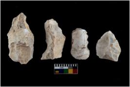 | Description / विवरण | There are 4 flake cores. All of them are fully fluted flake cores without any trace of crested ridge flakes. Some have flat base while few have round edges. |
