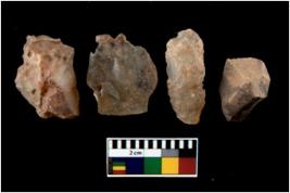 | Description / विवरण | There are n 4 utilized flake cores. Out of them one is made up of Chert and three are made up of Chalcedony. There are multi directional irregular scar pattern on them. Two are tapering at one end and two have blunted edges. |