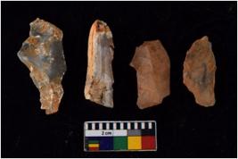 | Description / विवरण | There are n 4 flakes tool; there are flakes with sides trimmed, Marks of secondary flaking are present on the both the faces. The dorsal is relatively flat. |