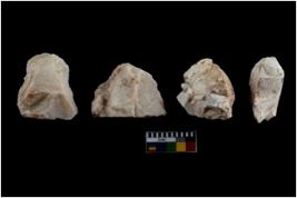 | Description / विवरण | There are 4 flake cores. All of them are fully fluted flake cores without any trace of crested ridge flakes. Some have flat base while few have round edges. |