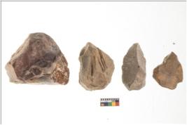 | Description / विवरण | There are n 4 flakes tool; there are multidirectional irregular scar pattern on them; made of short flakes and all four have tapering edges. |