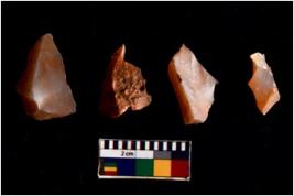 | Description / विवरण | There are n 4 flakes tool; there are flakes with sides trimmed, Marks of secondary flaking are present on the both the faces. |