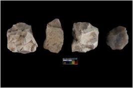 | Description / विवरण | There are 4 flake cores. All of them are fully fluted flake cores without any trace of crested ridge flakes. Some have flat base while few have round edges. |