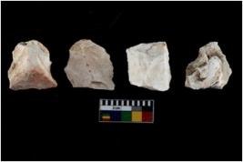 | Description / विवरण | There are 4 flake cores. All of them are fully fluted flake cores without any trace of crested ridge flakes. Some have flat base while few have round edges. |