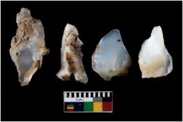 | Description / विवरण | There are n 4 ; worked utilized flakes; there are multidirectional irregular scar pattern on both dorsal and ventral face of the flakes. all are tapering at one end. All are having sharp edges. |