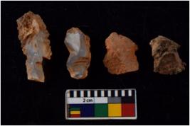 | Description / विवरण | There are n 4 flakes tool; there are flakes with sides trimmed, Marks of secondary flaking are present on the both the faces. The dorsal is relatively flat. |