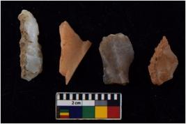 | Description / विवरण | There are n 4 flakes tool; there are flakes with sides trimmed, Marks of secondary flaking are present on the both the faces. |