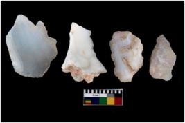 | Description / विवरण | Specimen of a cores with several broad fluted marks. The reverse bulb and platform can be seen. The flake scars are seen on all sides. |