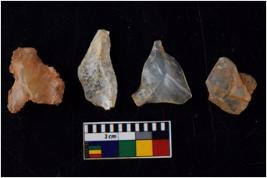 | Description / विवरण | There are n 4 flakes tool; there are flakes with sides trimmed, Marks of secondary flaking are present on the both the faces. The dorsal is relatively flat. |