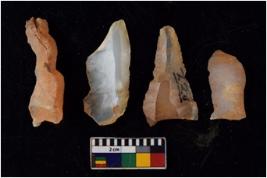 | Description / विवरण | There are n 4 flakes tool; there are flakes with sides trimmed, Marks of secondary flaking are present on the both the faces. |