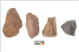 | Description / विवरण | There are n 4 flakes tool; there are multidirectional irregular scar pattern on them; made of short flakes and all four have tapering edges. |