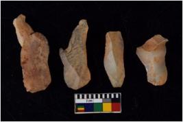 | Description / विवरण | There are n 4 flakes tool; there are flakes with sides trimmed, Marks of secondary flaking are present on the both the faces. |