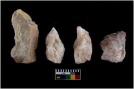 | Description / विवरण | There are 4 flake cores. All of them are fully fluted flake cores without any trace of crested ridge flakes. Some have flat base while few have round edges. |