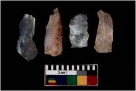 | Description / विवरण | There are n 4 flakes tool; there are flakes with sides trimmed, Marks of secondary flaking are present on the both the faces.The dorsal is relatively flat. |