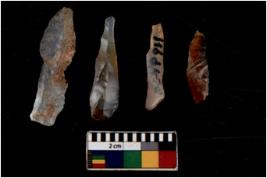 | Description / विवरण | There are n 4 flakes tool; there are large flakes with sides trimmed, Marks of secondary flaking are present on the both the faces. |