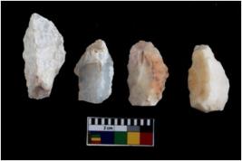 | Description / विवरण | There are 4 flake cores. All of them are fully fluted flake cores without any trace of crested ridge flakes. Some have flat base while few have round edges. |