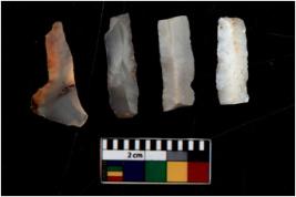 | Description / विवरण | There are n 4 flakes tool; there are flakes with sides trimmed, Marks of secondary flaking are present on the both the faces.The dorsal is relatively flat. |