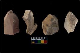 | Description / विवरण | There are 4 flake cores. All of them are fully fluted flake cores without any trace of crested ridge flakes. Some have flat base while few have round edges. |