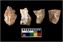 | Description / विवरण | There are n 4 utilized flake cores. There are multi directional irregular scar pattern on them. Two are tapering at one end and two have sharp edges. |
