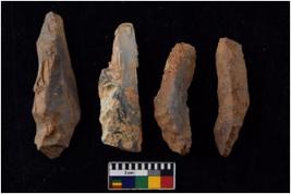 | Description / विवरण | There are n 4 flakes tool; there are flakes with sides trimmed, Marks of secondary flaking are present on the both the faces. |