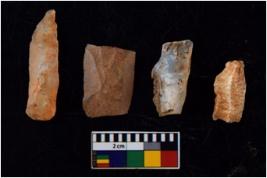 | Description / विवरण | There are n 4 flakes tool; there are flakes with sides trimmed, Marks of secondary flaking are present on the both the faces. |