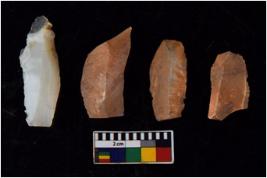 | Description / विवरण | There are n 4 flakes tool; there are flakes with sides trimmed, Marks of secondary flaking are present on the both the faces. |