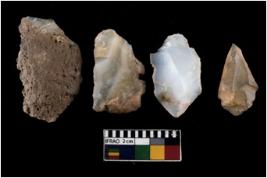 | Description / विवरण | There are n 4 ; worked utilized flakes; there are multidirectional irregular scar pattern on both dorsal and ventral face of the flakes. One of them is tapering at one end with a point. All are having sharp edges. |