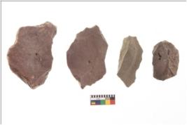 | Description / विवरण | There are n 4 flakes tool; there are multidirectional irregular scar pattern on them; made of short flakes and all four have tapering edges. |