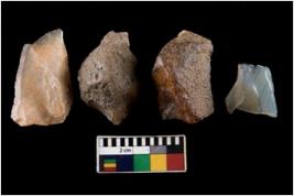| Description / विवरण | There are n 4 ; worked utilized flakes; there are multidirectional irregular scar pattern on both dorsal and ventral face of the flakes. One of them is tapering at one end whereas one is having a flat base. All are having sharp edges. |