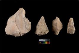| Description / विवरण | There are 4 flake cores. All of them are fully fluted flake cores without any trace of crested ridge flakes. Some have flat base while few have round edges. |