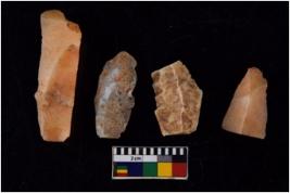 | Description / विवरण | There are n 4 flakes tool; there are flakes with sides trimmed, Marks of secondary flaking are present on the both the faces. |