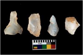 | Description / विवरण | There are n 4 utilized flake cores. There are multi directional irregular scar pattern on them. Three are tapering at one end and one has sharp edge. |