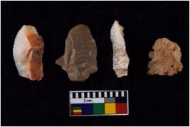 | Description / विवरण | There are n 4 flakes tool; there are flakes with sides trimmed, Marks of secondary flaking are present on the both the faces. The dorsal is relatively flat. |