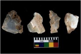 | Description / विवरण | There are n 4 utilized flake cores. There are multi directional irregular scar pattern on them. Two have sharp edges and two have blunted edges. |