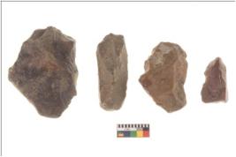| Description / विवरण | There are n 4 flakes tool; there are multidirectional irregular scar pattern on them; made of short flakes and all four have tapering edges. |