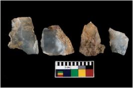 | Description / विवरण | There are n 4 ; worked utilized flakes; there are multidirectional irregular scar pattern on both dorsal and ventral face of the flakes. One of them is tapering at one end whereas two are having flat base. All are having sharp edges. |