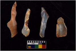 | Description / विवरण | There are n 4 flakes tool; there are flakes with sides trimmed, Marks of secondary flaking are present on the both the faces. |