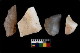 | Description / विवरण | Specimen of a cores with several broad fluted marks. The reverse bulb and platform can be seen. The flake scars are seen on all sides. |
